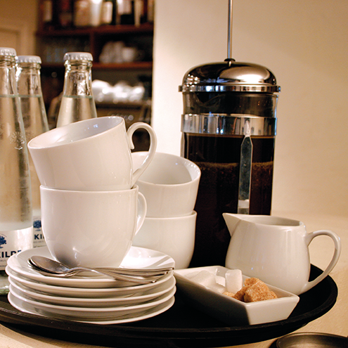 Alt vores porcelæn er af samme høje kvalitet som benyttes på restaurant Kokken & Tyren i Ringsted. Vores service er udvalgt specielt for æstetikken og det gode håndværk, således at maden præsenteres bedst muligt.